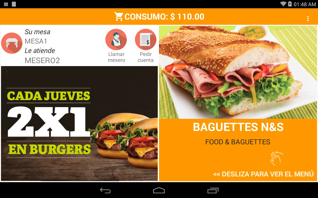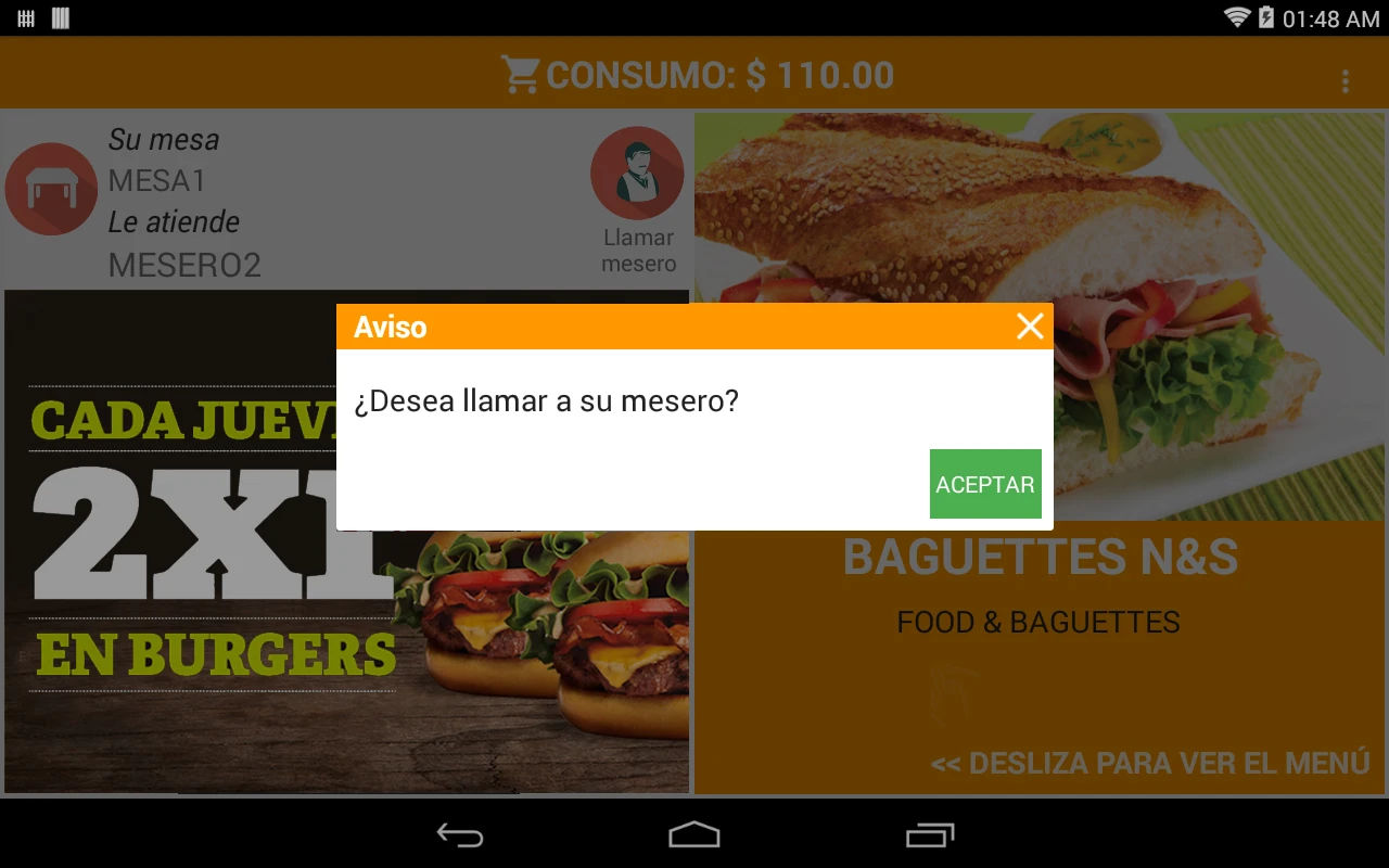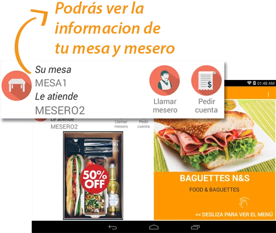 Con la función Llamar Mesero* o Pedir Cuenta*