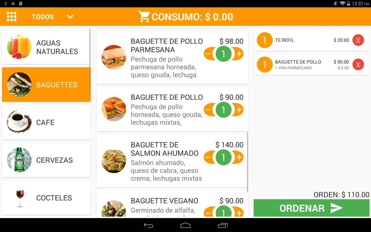El comensal podrá navegar a través de grupos creados como ensaladas o postres sin que estos cambios afecten los sistemas Soft Restaurant o Soft Restaurant Móvil.