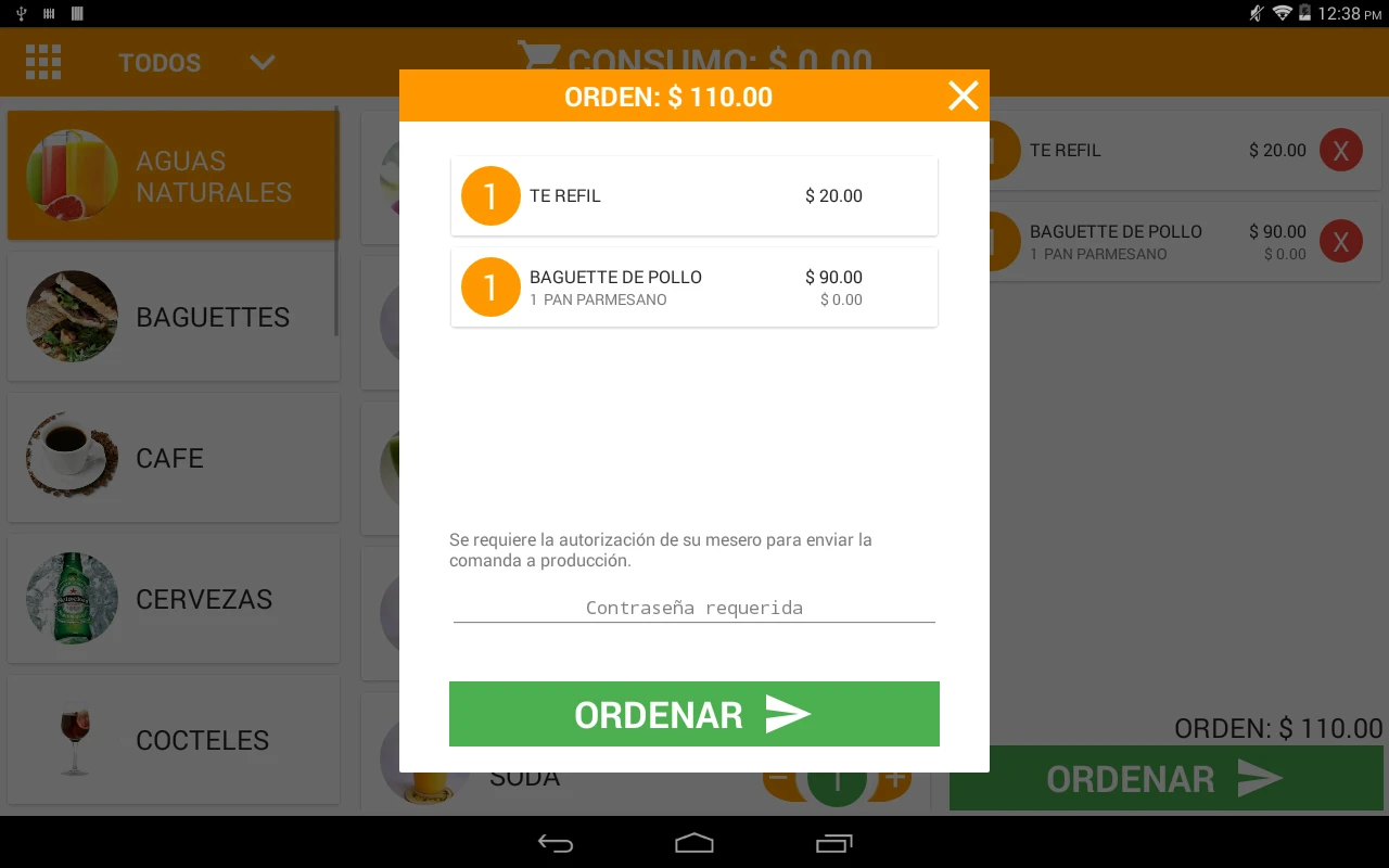 Le permite a su cliente disponer de un servicio sin necesidad de esperar que el mesero se desplace a su mesa. Evite pedidos accidentales configurando la opción de que los órdenes de los clientes sean autorizados por el mesero mediante contraseña.
